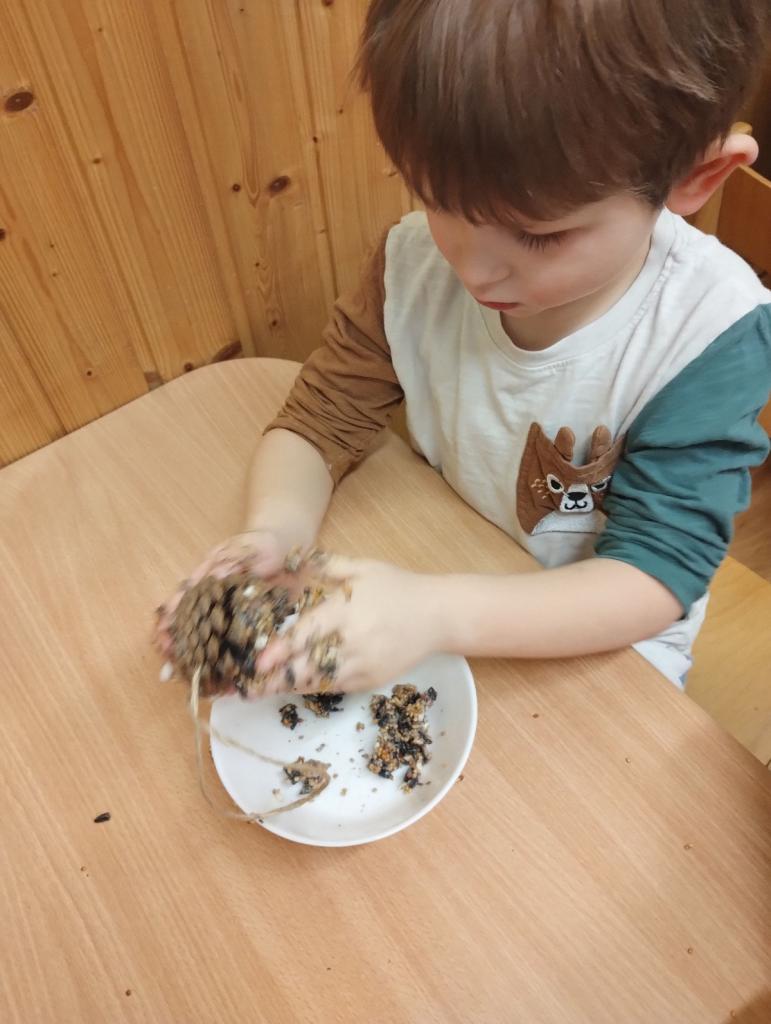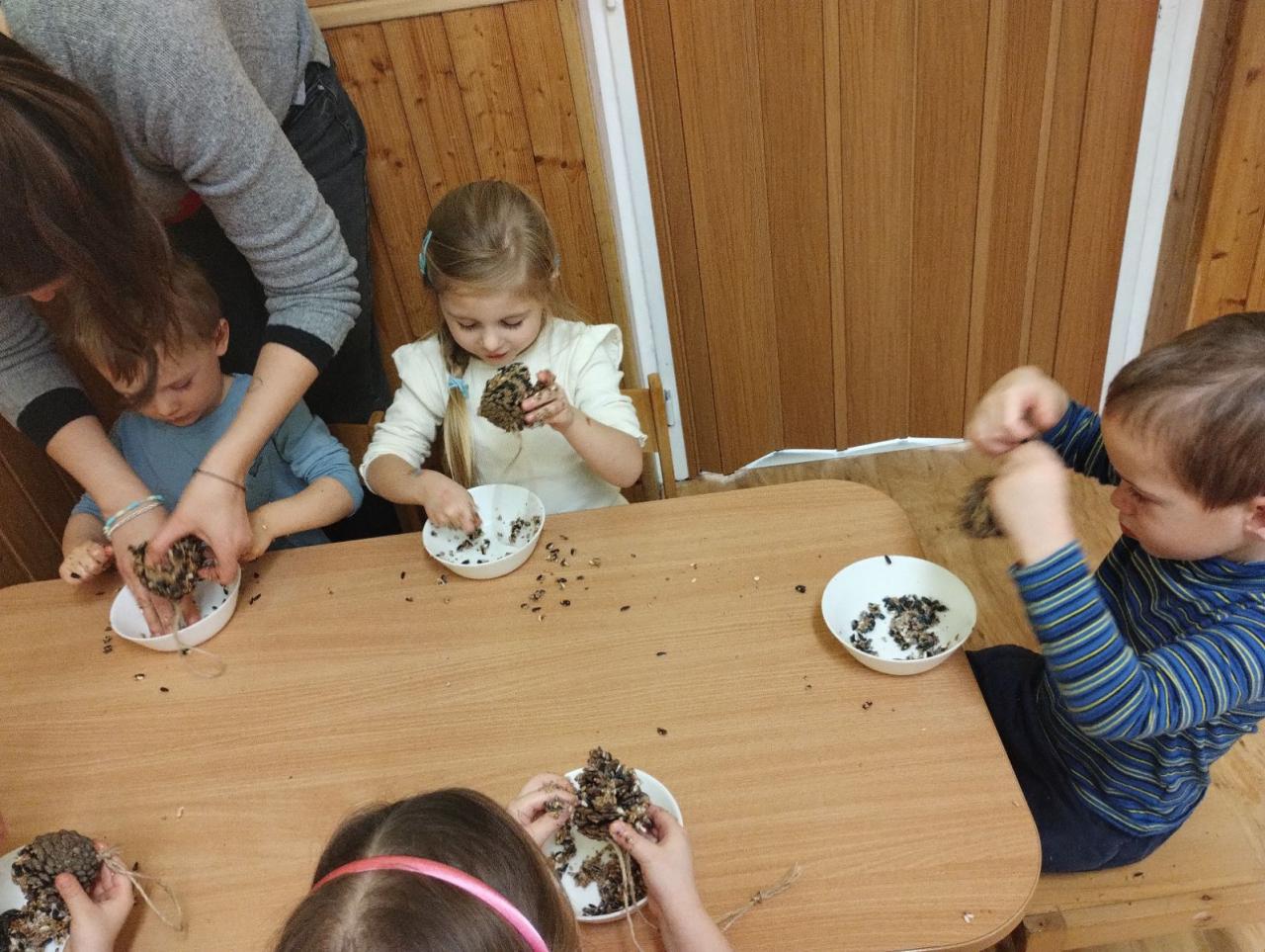 Výroba lojových koulí: Společně jsme míchali směsi semínek a tuku a vlastnoručně jsme tvarovali výživné koule, které ptáčkům dodají tolik potřebnou energii.