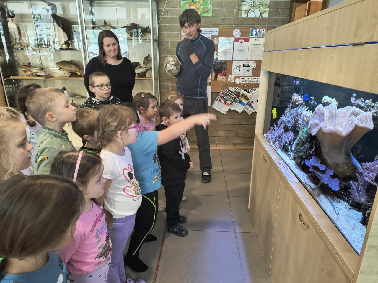 Děti však byly úžasné a náhradní program si užily naplno. Velkým hitem se stala nádherná mořská i sladkovodní akvária přímo v budově, u kterých jsme mohli pozorovat podvodní svět dlouhé minuty. Venku nás bavili volně pobíhající králíci a fascinovalo nás pozorování mnoha druhů ptáků na krmítku, které jsme sledovali nejen z oken, ale i prostřednictvím on-line přenosu.