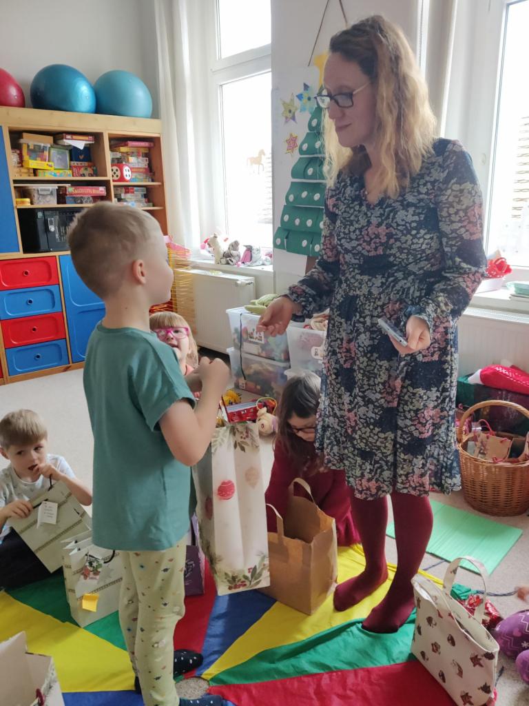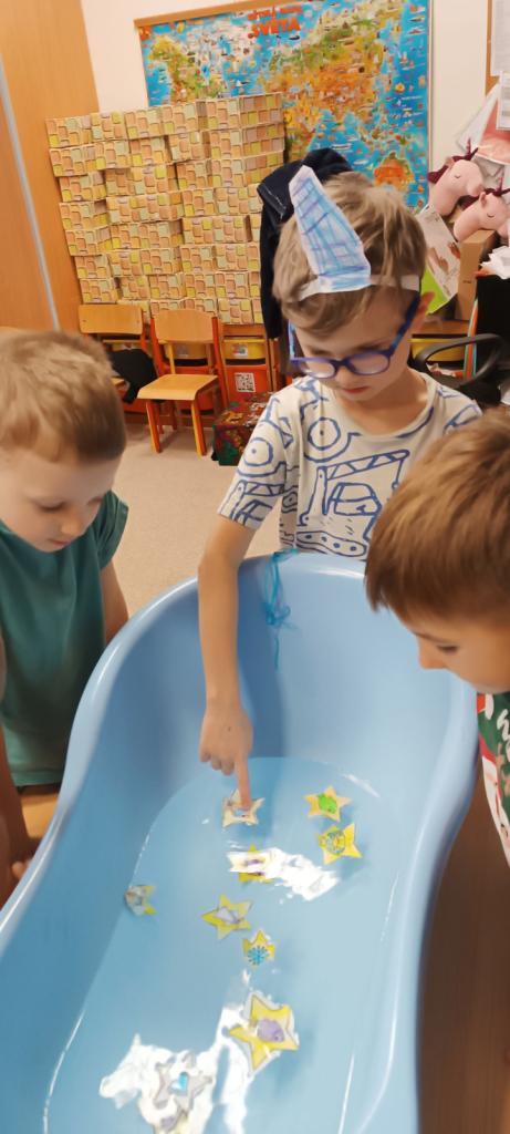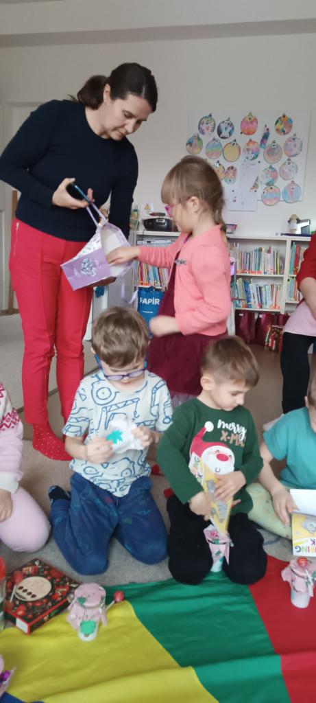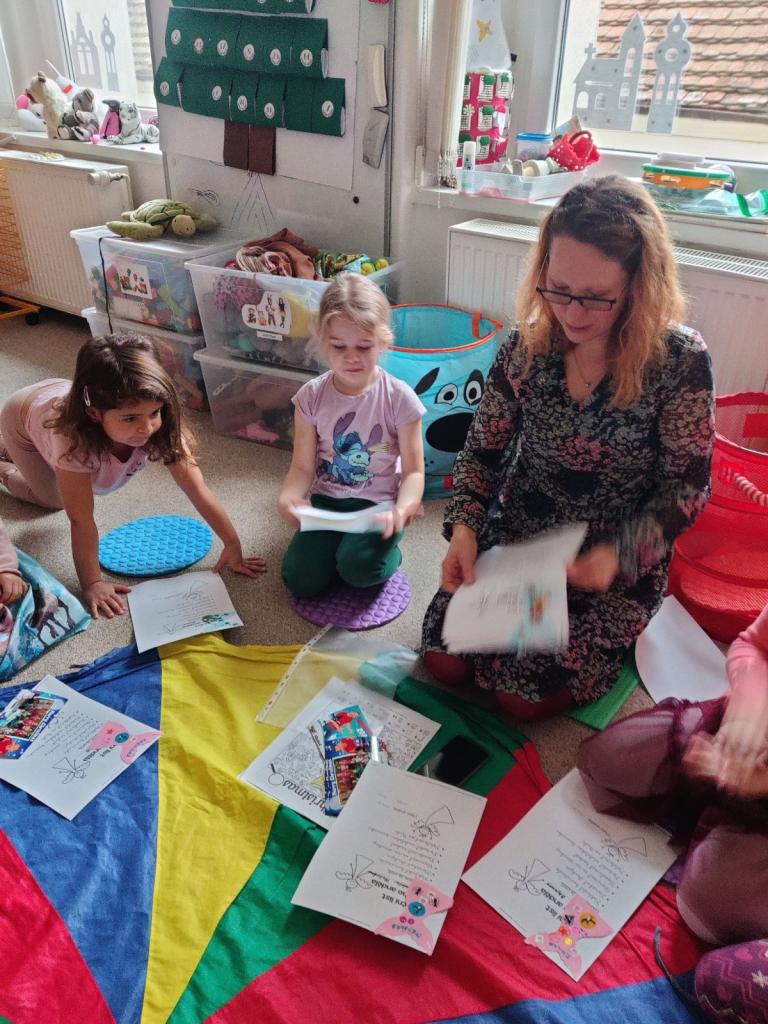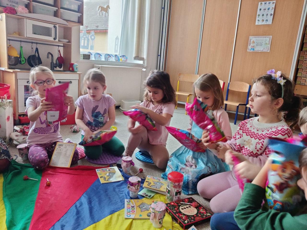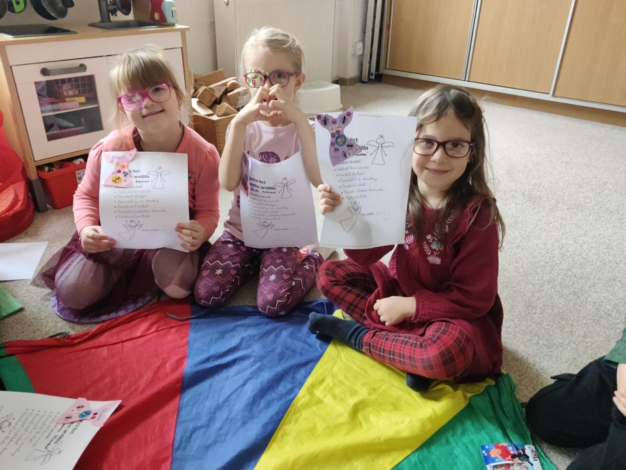 Hvězdičky, přání a radost z dárků :-). V předškolní třídě Motýlků panovala od samého rána atmosféra plná veselého a radostného očekávání. Děti se nemohly dočkat, zda k nim i letos zavítá Ježíšek se svou nadílkou. Sváteční dopoledne začalo tvořivě – děti si vyrobily papírové hvězdičky, do kterých pošeptaly svá tajná přání. Ty pak společně pouštěly po vodě a sledovaly, kam je proud zanese. Poté přišla chvíle zasloužené odměny. Za pečlivé plnění všech „andělských úkolů“, které děti v uplynulých dnech provázely, obdržel každý Motýlek diplom. Když se k dětem připojila paní učitelka Míša, napětí vyvrcholilo. Konečně nastal čas na to nejdůležitější – společné rozbalování dárečků pod stromečkem. Radost v dětských očích byla nepopsatelná a celé dopoledne jsme zakončili společným slavnostním obědem, rozkrojením jablíčka, mlsáním vánočních dobrot a sdílením dojmů z kouzelné nadílky. Děkujeme za krásné dárky od srdíčka a dobroty, jak pro děti, tak pro paní učitelky, pro Věrku i Lenku. Přejeme Vám všem krásné Vánoce! EBF