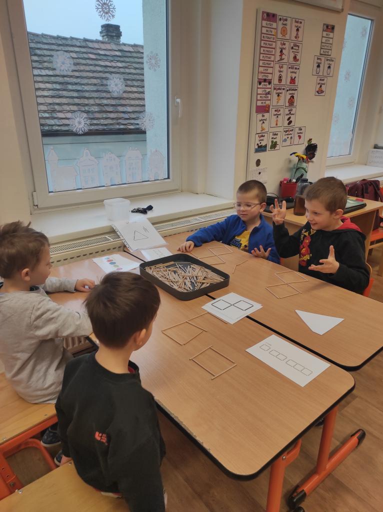 s geometrickými tvary pomocí dřívek a s intuitivním